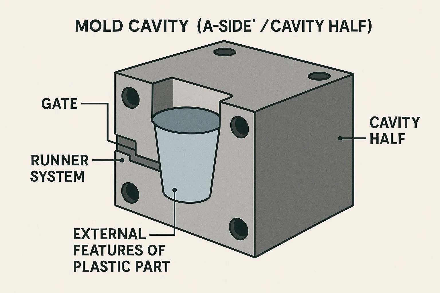 Ydin ja onkalo ovat saman kolikon kaksi puolta, mutta niillä on pohjimmiltaan erilaiset roolit injektiomuovauksessa. Näiden erotusten ymmärtäminen on ratkaisevan tärkeää asianmukaiselle home- ja osien suunnittelulle.