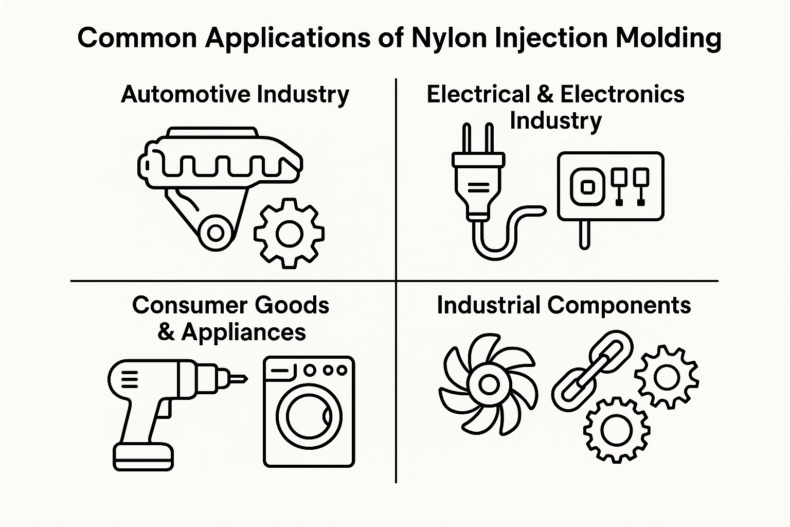 Nylon-ruiskupuristuksen yleiset sovellukset
