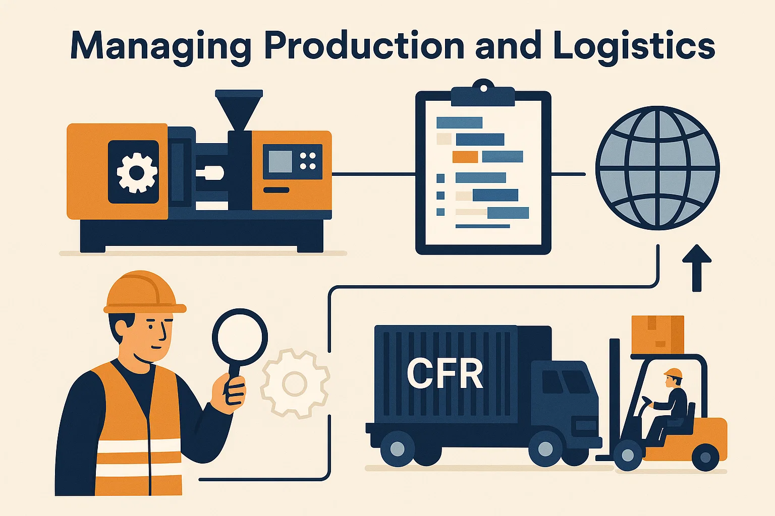 Kun muotisi on viimeistelty ja hyväksytty, ja tuotanto alkaa, painopiste siirtyy valmistusprosessin valvomiseen ja valmiiden osien tehokkaan ja kustannustehokkaan toimittamisen varmistamiseen. Tuotannon aikataulujen, kuljetusten ja tullien hallinta voi olla monimutkaista, mutta asianmukaisella suunnittelulla ja viestinnällä se on hallittavissa oleva prosessi.